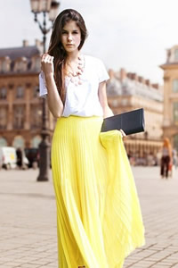 可穿A字形剪裁的T恤,或者选择泡泡袖。